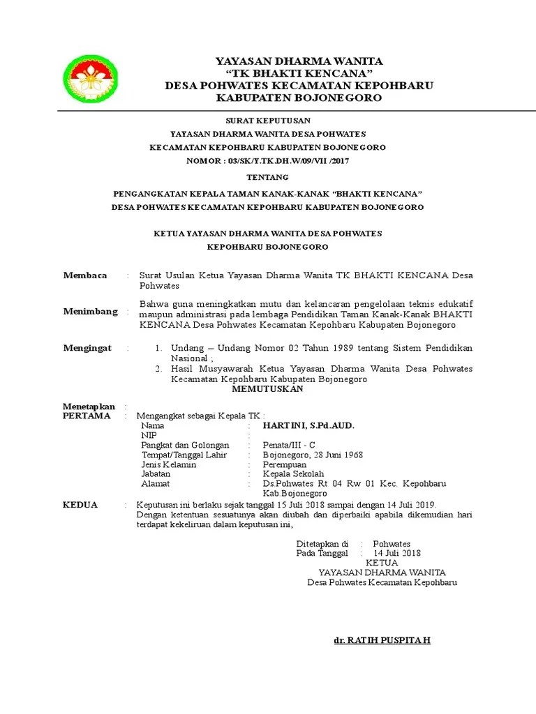 Download lengkap sk guru pau desa tahun 2020. Doc surat keputusan kepala mdt miftahussa adah juy herdian academia edu. Sebuah lembaga paud harus memiliki surat keputusan . Contoh sk pengangkatan kepala sekolah oleh yayasan doc dapatkan contoh contoh sk bendahara pauddoc guru ilmu sosial sk gtt kepala sekolah . Contoh sk guru tetap yayasan madrasah format doc.